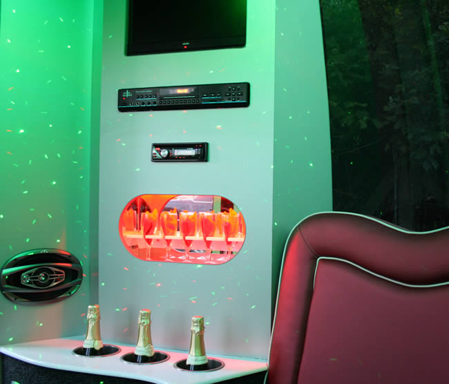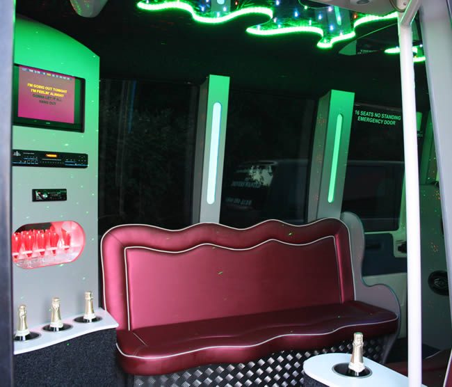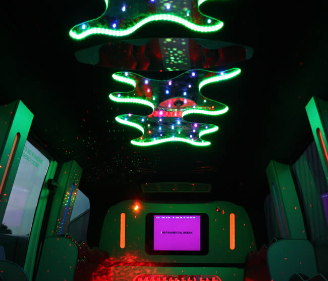 Our image gallery showcases all of the amazing features and facilities available onboard our luxury party bus! A design and build that is exclusive to us at Custom Coach Ltd, customers can sit back and relax in comfortable surroundings as we drive you in style to your destination! From Bristol to Avonmouth, Clevedon to Portishead and Chepstow to Newport, we have the local area covered! Get a quote for hire or make a booking today by calling us on 0117 370 6485 or completing our enquiry form.